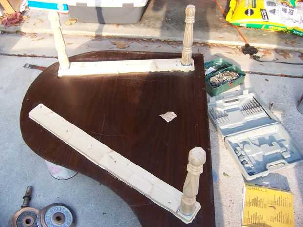 Después de preping la tapa comencé a trabajar en los apoyos de la pierna. Lo establecido por el 2 x 4 un consiguió una buena Idea donde yo quiero las piernas. Necesita para mantener un ojo hacia fuera en donde pones tus piernas, si te los pones a twards lejos el centro de que la mesa se inclinará cuando a mayor presión se aplica pero esto es común desde. Sólo mantenerlo equilibrado.