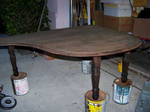 Mancharon las piernas mediante la adición de la mancha y limpie él apagado con un trapo hasta que conseguí el color correcto. Deje seca y restain si es necesario.
