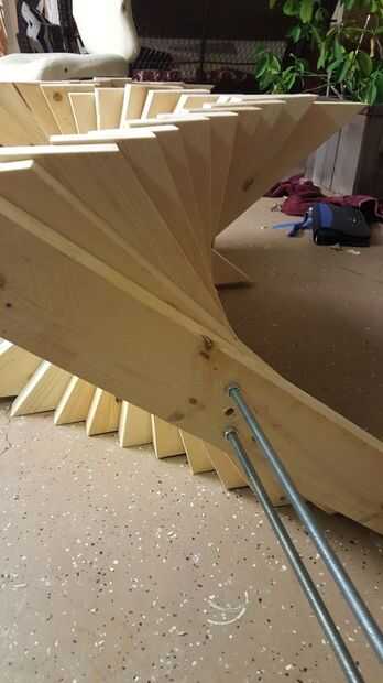 Para probarlo, simplemente Atornille una tuerca y una arandela en el extremo de cada pieza de allthread y empezar a apilables piezas en la secuencia que hemos elaborados anteriormente. Funciona mejor para hacerlo verticalmente. La gravedad es tu amigo. Física es casi tan cool como trigonometría!