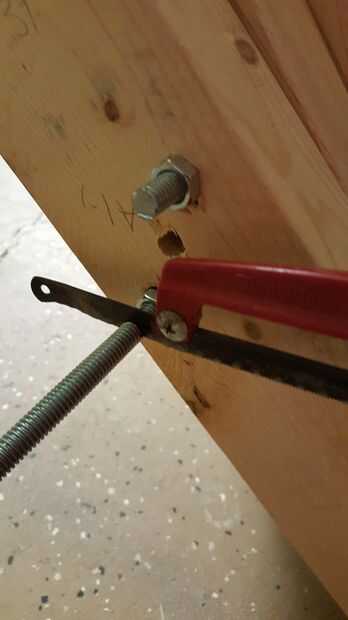 Una vez que estés feliz con cómo su pieza está tomando forma, seguir adelante y recorte el exceso allthread con la sierra para metales. Tómese su tiempo para asegurar un corte recto y no dañar las roscas en los extremos.