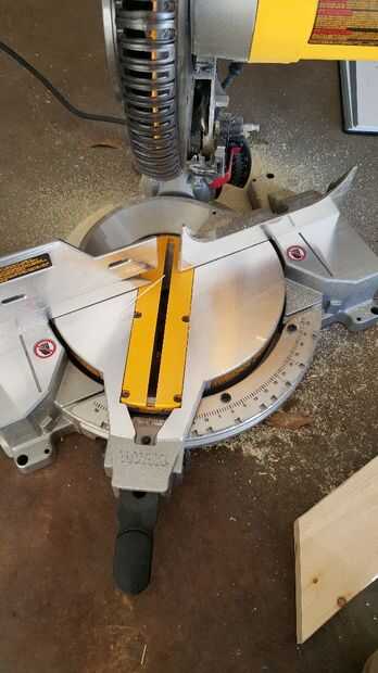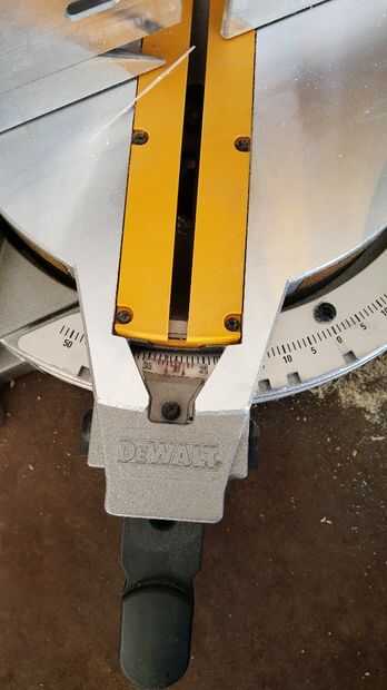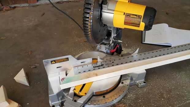Bastantes matemáticas y planificación... tiempo para jugar con las herramientas! Romper su sierra para cortar ingletes y ajustar el ángulo de 50 grados.
