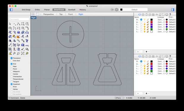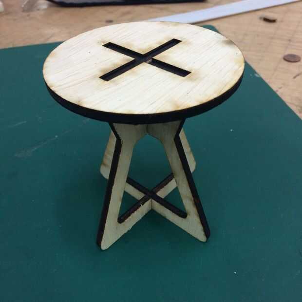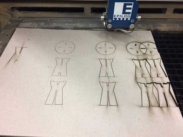 Cuando yo era feliz con este diseño exporta mi dibujo de Rhino a Illustrator. Luego preparé el archivo lasercutting en un laser de Epilog fusión. Esta pequeña maqueta usa 1/8" tilo. La maqueta es útil para ver la idea desde el software al espacio físico de modelado en 3D y permite evaluar el diseño.