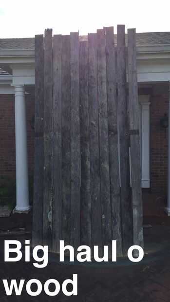 Tiré hacia abajo alrededor de 15-20 12' tablas de la cerca para asegurar que tenía bastantes "secciones bien" que podrían utilizarse para la parte superior y lados de la mesa sin tener demasiados agujeros de nudos, grietas, o reducido los bordes. También trajo abajo 4 4' puestos para las patas de la mesa.