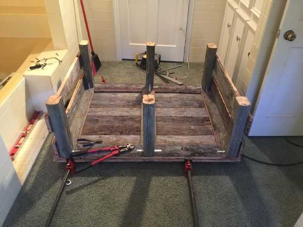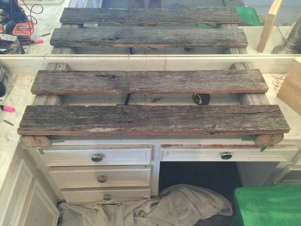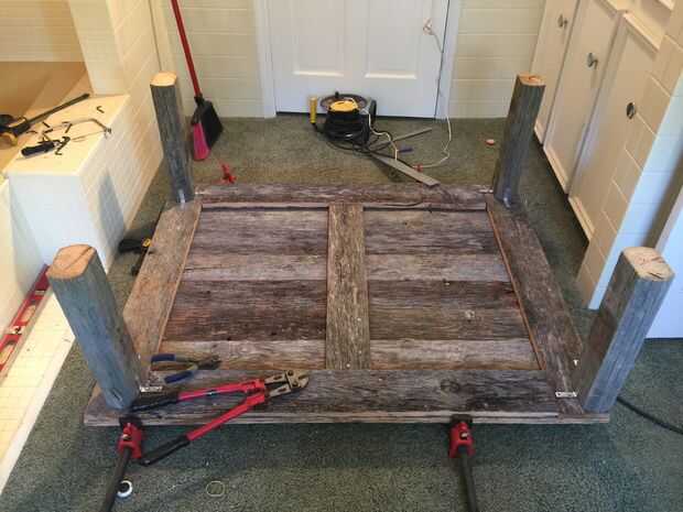 Las piernas eran todos cortar a 20" y monta en el bajo soporte con dos o tres soportes de la esquina L y tornillos ¼" 1. Me aseguré de montar los soportes en medio de lo post que no causa ninguna flexión cuando la mesa había peso en él.