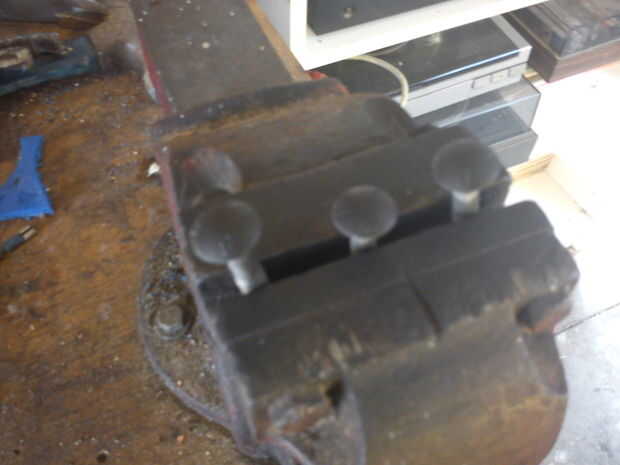 he quitado las bandas top 2 con un martillo y un bloque de madera y luego limpiar con disolventes. Les colgué del techo con alambre y pintada color negro mate con spray. También pinté las cabezas del entrenador pernos