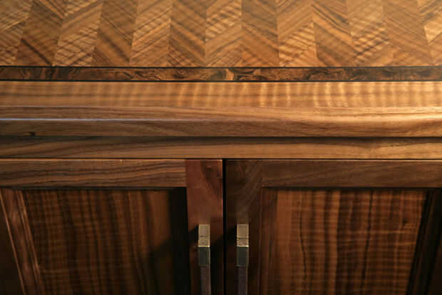 El final que he utilizado es un barniz a base de aceite. Lo que me gusta sobre barniz es que tiende a ámbar significativamente en los primeros meses; que aporta mucha calidez al fuerte carácter de la madera.