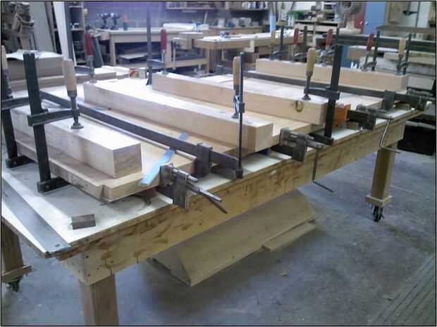 Abrazaderas aplicación presión lateral y cauls aplicación presión hacia abajo para asegurar una superficie plana.