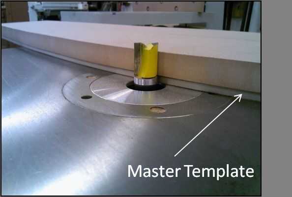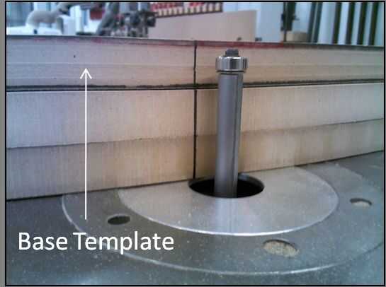 Tornillo de la plantilla principal a uno de los cortes MDF de ¾" y utilizar un fondo rodamiento patrón poco ajuste rasante a la plantilla. Este ¾" plantilla MDF se convierte en la base para la forma de doblado de la laminación.