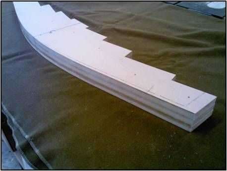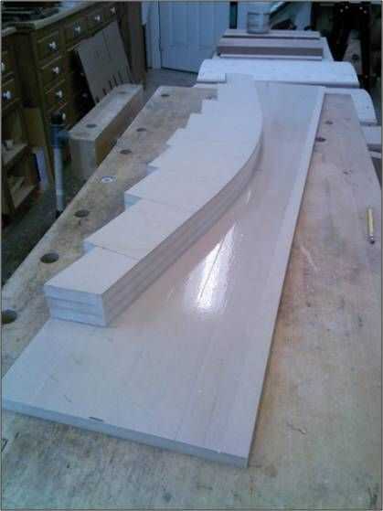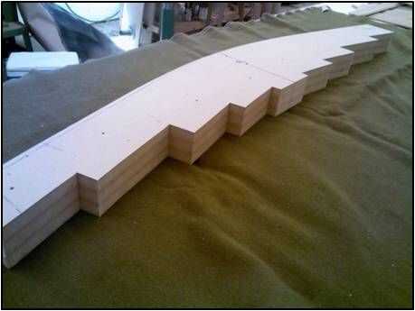 20 tiras de flexión de la madera contrachapada de 1/8" o 10 tiras de ¼" MDF 2 "x 48". Utilice un trozo de cinta de embalaje en el centro para atar el paquete de tiras juntos. Cualquiera servirá como una sujeción caul bajo la forma de flexión.