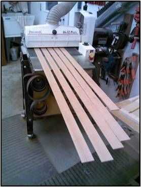 Yo usa una sierra para cortar las tiras de ¼" de espesor y luego lija suave a 3/16" de espesor. Luego marqué la superficie superior con una marca de referencia para asegurarse de que estaban en el orden correcto cuando está pegado.