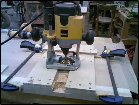 Utilice un ½" pedacito recto con un casquillo de guía. Ajuste la profundidad de corte a la medida necesitada para crear una extensión lateral al ras.