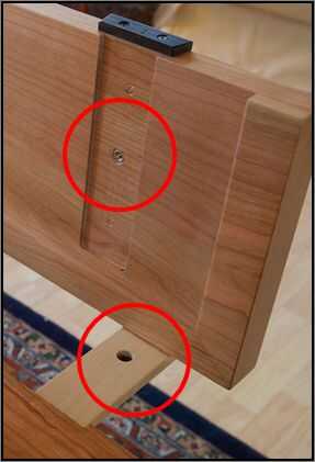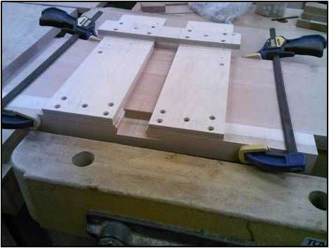 Los lados también utilizan un inserto roscado de ¼ "x 20 tpi, en la mortaja de la Cala de cola de Milano. Un tornillo moleteado se usa para fijar las alzas a los rieles de cola de Milano. Se perfora un orificio de 3/8" en la cuña. La posición del agujero se transfiere cuando se establece la extensión lateral en el lugar.