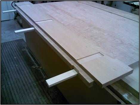 Después de que disponen a los lados, marcar los extremos para coincidir con la longitud de la mesa y cortar el lado cortan extensiones de esas marcas con una cruz de la sierra.