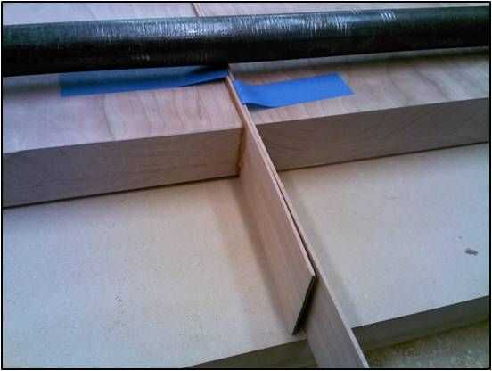 Para que queden del mismo grosor de la mesa, un ½ "x 2" pieza de madera se pega a los bordes y los extremos.