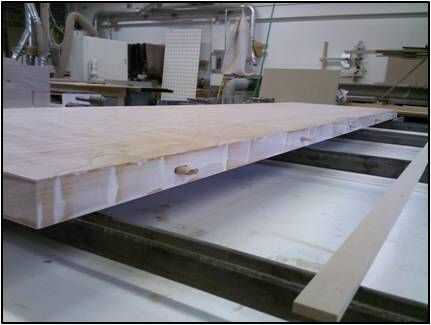 Una ensambladora Domino fue utilizado para colocar cinco espigas a lo largo de los bordes de los tableros. Estas espigas fueron utilizados para la colocación y alineación de las juntas, no por fuerza, el de grano largo al borde de grano largo pegado siempre una resistencia adecuada.