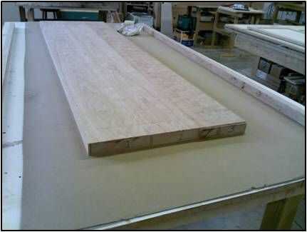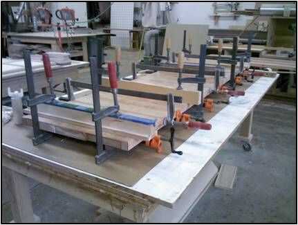 Las abrazaderas fueron fijadas a través de la presión aplicada tableros y cauls en toda la superficie para asegurar la llanura.