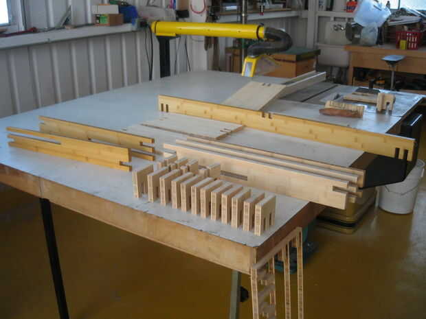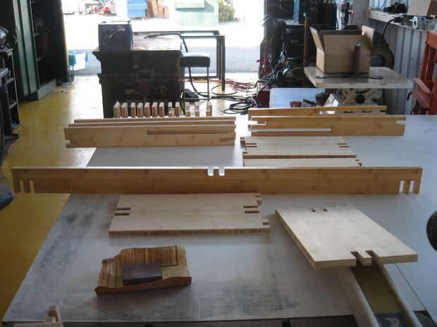 Mesa de comedor de bambú y bancos (18 / 27 paso)