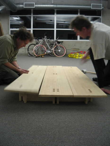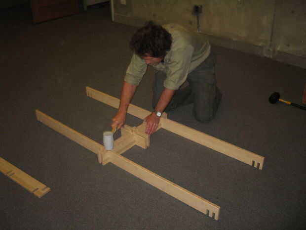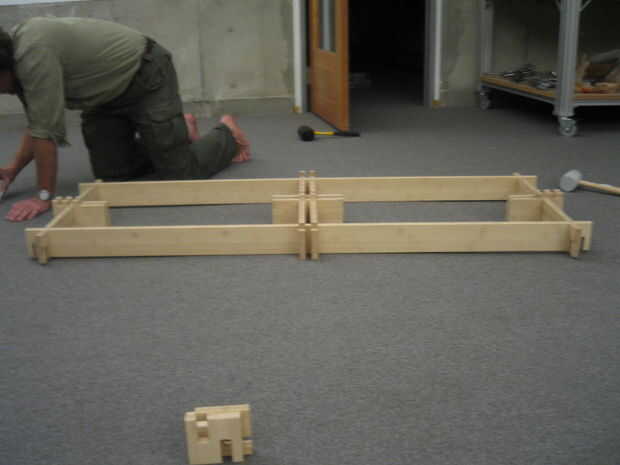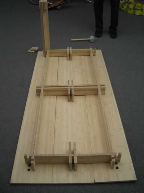 Mesa de comedor de bambú y bancos (22 / 27 paso)