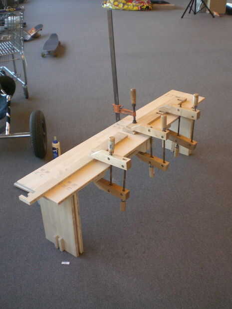 Mesa de comedor de bambú y bancos (25 / 27 paso)