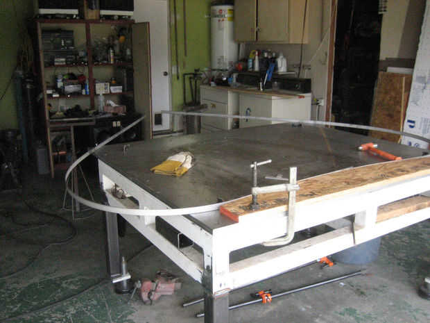 Doblado la plana inoxidable bar alrededor de una madera y un molde de acero, soldadura de los extremos para formar una banda continua.