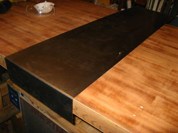 2 - doblar un ángulo de 90° en 1 lado y use una lijadora de banda para ajustar el accesorio de la puerta. La hoja de metal debe ser perfectamente incluso con la superficie de madera.
