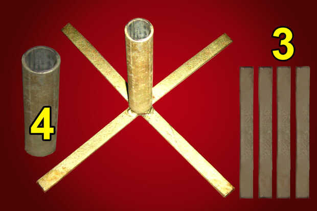 En este paso arco soldar el tubo grueso pequeño a los 4 pedazos de FLAT MS como se muestra en esta fotografía.