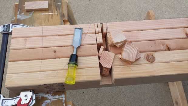 Use un martillo o un cincel para quitar el resto del material y alisar la parte inferior de la muesca con un cincel afilado para mostrar y practicar alguna habilidad de trabajo de la madera.