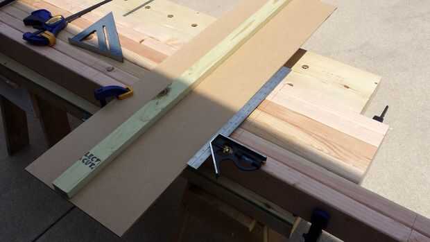 Ajuste la profundidad de corte de la sierra a 2 1/4" para las piezas (5) de los soportes de la cruzadas, que de la profunda hendidura de 2" y 1/4" de espesor de tablero duro. Ejecutar la sierra y corte a lo largo de una guía y la sierra alrededor del tirón y corte a lo largo de la guía de otros desde la dirección opuesta. Continué haciendo correr la sierra entre dos guías de un par de veces más libre entregado para más material de desecho.