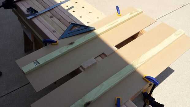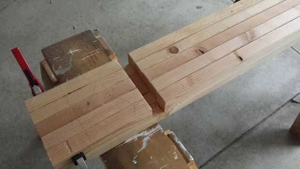 Los dos de los 8' largo apoyando vigas fueron diseñados para ser recortados 1 1/2" de profundidad que había más material para apoyo. Siguiendo el mismo procedimiento, la única diferencia sería que la profundidad de corte se estableció como 1 3/4", que es 1 1/2 ranura profundidad plus 1/4" espesor de tablero duro.