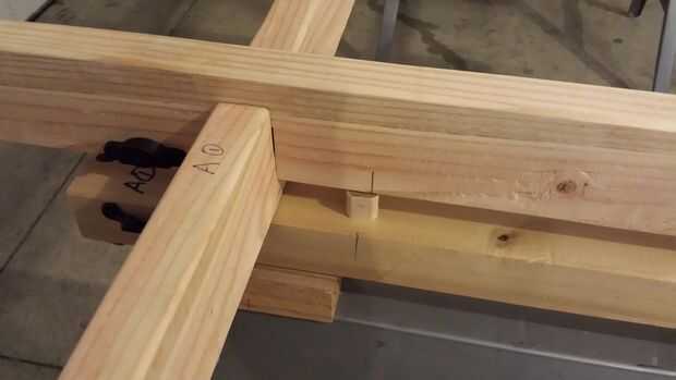 Coloque cada una de la pieza más corta en los pedazos más largos alineando la muesca hacia abajo y presione hacia abajo, ahora hemos creado una escalera con juntas de regazo.