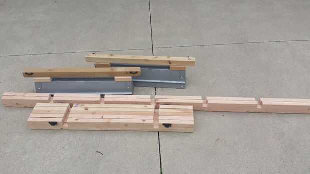 La Asamblea es fácil. Coloque dos piezas largas en los caballetes, con las muescas hacia arriba.