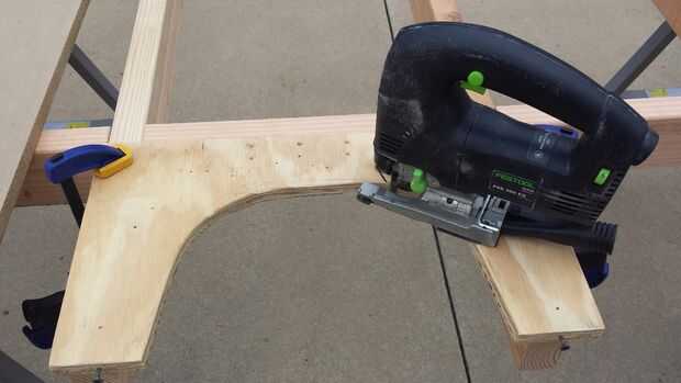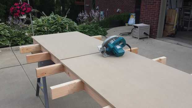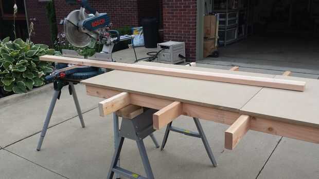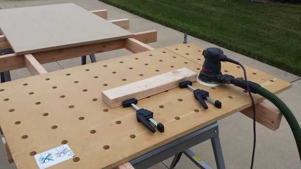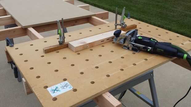 En esta mesa, fijación con abrazadera se convierte en fácil debido a su estructura abierta. Y es muy sólido por el empalme de regazo ajuste apretado un poco. Coloque una madera contrachapada de hoja de 4 x 8 en él, y tenemos mesa de buen tamaño.