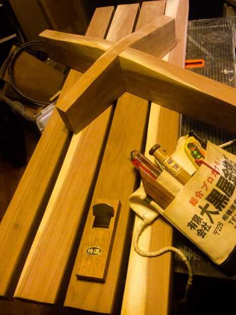 Me decidí por un travesaño como se muestra en la imagen. Apenas corté 2 piezas con un arco leve para la estética. Yo recortados los dos en el medio para que se traben junto con un tornillo en la parte inferior.