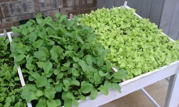 Otra vez, he intentado crecer a todo tipo de cosas en mis tablas de ensalada. Incluso he empezado tomates de semillas en mi mesa de ensalada cubriendo una sección con el abrigo de saran... Por lo tanto, experimentar y sobre todo diviértete! También en la foto aquí es un conjunto de 3-4' luces de tienda que amañado sobre mi mesa de ensalada para el cultivo de invierno / interior... Por favor tenga en cuenta que no hay mucho de suelo en una mesa de ensaladas y es imperativo que usted riegue regularmente. He encontrado que uno de lo grande regadera galvanizada de 1,5 galones diarios en los días más calientes funciona bien. También, tenga en cuenta, que lechugas y hojas verdes son verduras de "temporada fría" y no les gusta el calor del verano en el sureste y suroeste. El patrocinador del concurso Granjero urbano, planta enlace, sería una gran adición a su mesa de ensaladas. Primavera y otoño, épocas de crecimiento son los mejores con los verdes.
