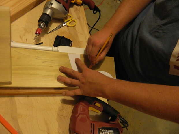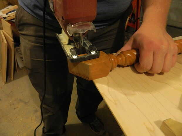 Hacer una plantilla y cortar cuatro patas de la 1 "x 6". Estos pueden ser de cualquier forma te gusta, sólo asegúrese de que encajan en el extremo de la barandilla y sentarse en el suelo.