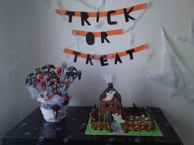 También hice una estación de la piruleta donde los niños pueden agarrar a uno a la salida como un gracias por venir a la fiesta. Es un día de ruina a los niños cuando es Halloween en mi casa.