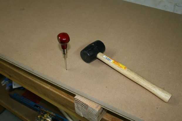 Marcado el MDF, perforar agujeros en el MDF y limpiar el arranque del taladro con un plano de bloque. Luego prendieron el MDF de la melamina y utiliza un punzón y un martillo para marcar las posiciones de los agujeros. Luego perforé los agujeros piloto en la melamina en los lugares marcados.
