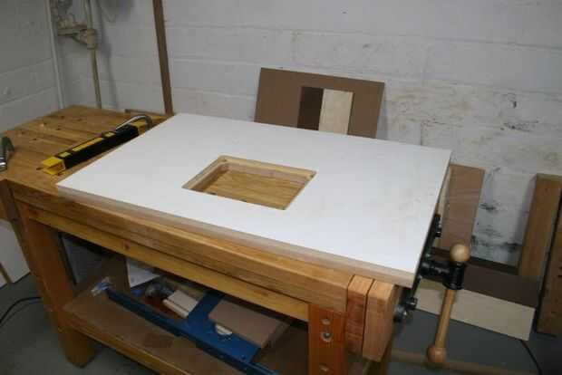 Paralelismo no es realmente mucho de un problema en una mesa de fresadora, porque la herramienta de corte es un punto fijo. En una sierra de mesa, es fundamental que la pista de inglete paralela al disco. Sobre una mesa de fresadora, tal paralelismo es sólo una cuestión estética. Aún así, la placa de perceptiblemente no ser paralela al borde o los bordes perceptiblemente no Plaza haría mirar bastante extraño, así que hice un esfuerzo para mantener el paralelismo y perpendicularidad.