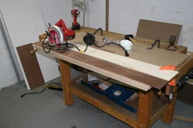 Marca una línea paralela al borde de la mortaja y había extendido a la parte inferior. Entonces hice un corte recto a través del fondo entre las marcas. He hecho todos los cortes con la melamina en la parte inferior. La hoja de una sierra circular corta para arriba, hacia la sierra, para que rasgue-hacia fuera se produce en la parte superior. (Una sierra de mesa cortes hacia abajo hacia la mesa, para que rasgue-hacia fuera se produce en la parte inferior).