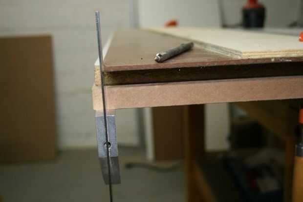 He querido mío para que quepa en el estante de debajo de mi banco, así que me decidí en 40", porque la distancia entre las piernas es de 41". Tenía la intención de envolver con 1/2" madera dura, así que corte a 39".