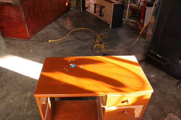 Los cajones que ya estaban en la mesa resultada para ser excelente almacenamiento. Hubo espacio incluso para la fresadora vieja que me dieron.
