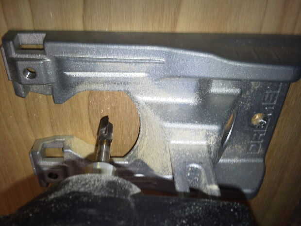 Ahora para el taladro de broca. Usé 1 1/4 de pulgada, pero en retrospectiva que puede ser demasiado grande. 7/8 o 1 pulgada debería funcionar bien.