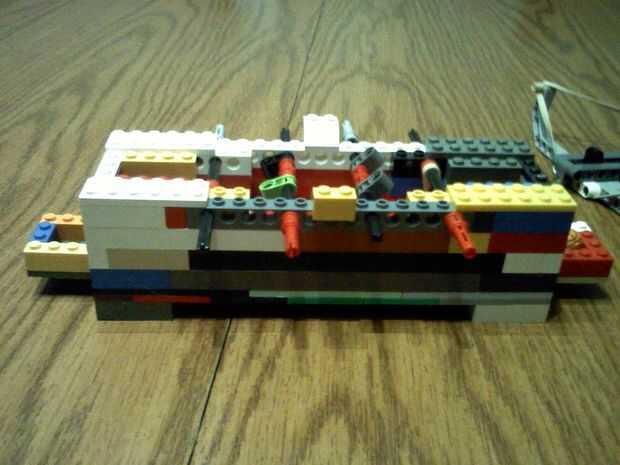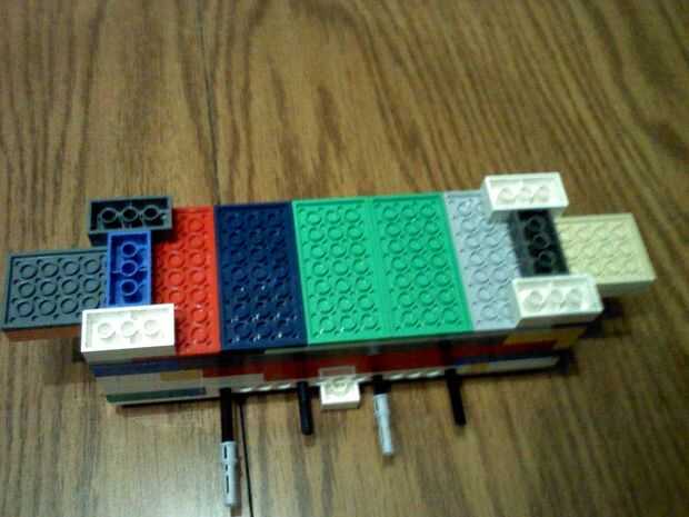 Creación de LEGO a base de muebles parece ser un derecho de paso para todos los padres. Aquí es mío. Paredes laterales de gran tamaño contienen el LEGO en la mesa durante la descarga. Una montaña personalizada con placas base LEGO anima a construir e