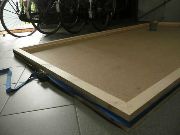 D: Unir los cuatro lados, pasar una cinta alrededor del marco y apriételo. El conglomerado debe estar en el centro de la construcción. Dejar el pegamento se endurezca durante al menos 4 horas.