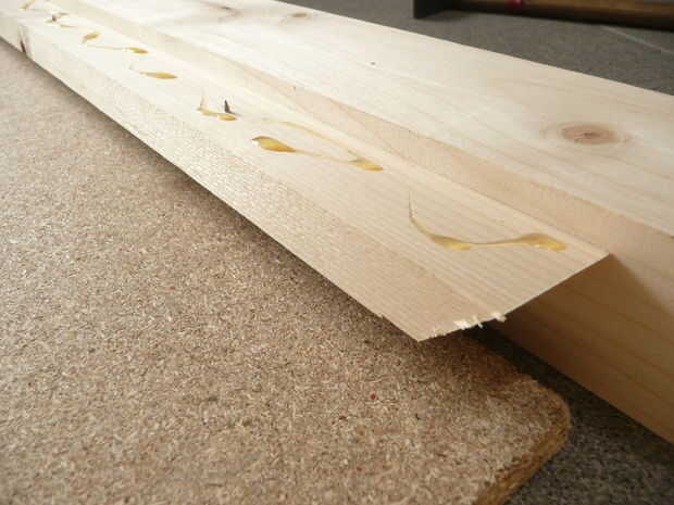 C: Con algunos clavos y pegamento de construcción (poliuretano), fije las cuatro vigas más pequeñas (Nº 3 y 4) a los correspondientes más grandes (Nº 1 y 2). Las vigas más pequeñas se deben pegar a la altura correcta. Por lo que el conglomerado se ajusta a la cresta.