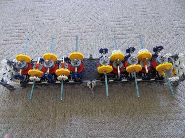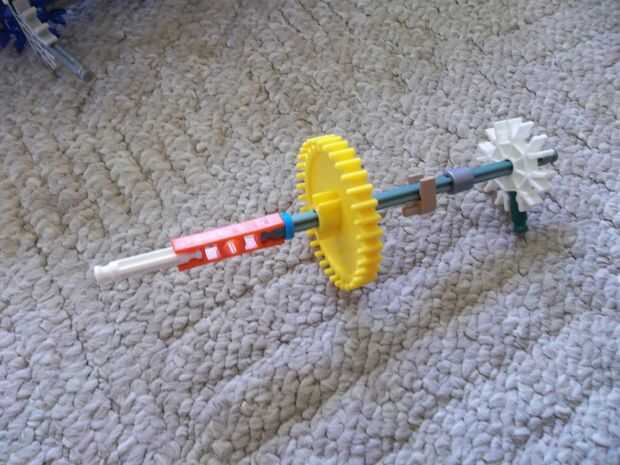 Por último, tres muestra tres más pedazos que usted necesita para añadir a cada barra. Primero el eje de la rueda, luego el espaciador, y luego el clip tan.