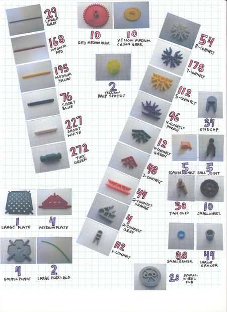 Más de unos pocos coleccionistas de K'nex a discutir cuando ven a la masa de piezas necesarias para construir esta. Pero bueno, no se preocupe, algunas de las piezas son opcionales. Si el número está en rojo, las piezas están necesario para construir esta mesa de juego. Si son púrpura, puede sustituir otras piezas K'nex en su lugar.