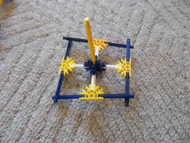 Construir una de estas piezas base, entonces también construir el pedazo de centro pequeña que se muestra en la imagen dos, entonces combínelos como se muestra en la imagen tres.