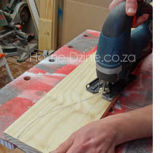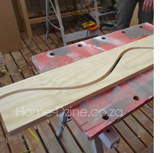 En cada uno de los tablones de la parte superior dibuja una línea ondulada y luego cortar con una sierra de calar.