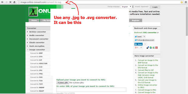 Utilice cualquier jpg a .svg convertidor. Puede ser esto (es online):